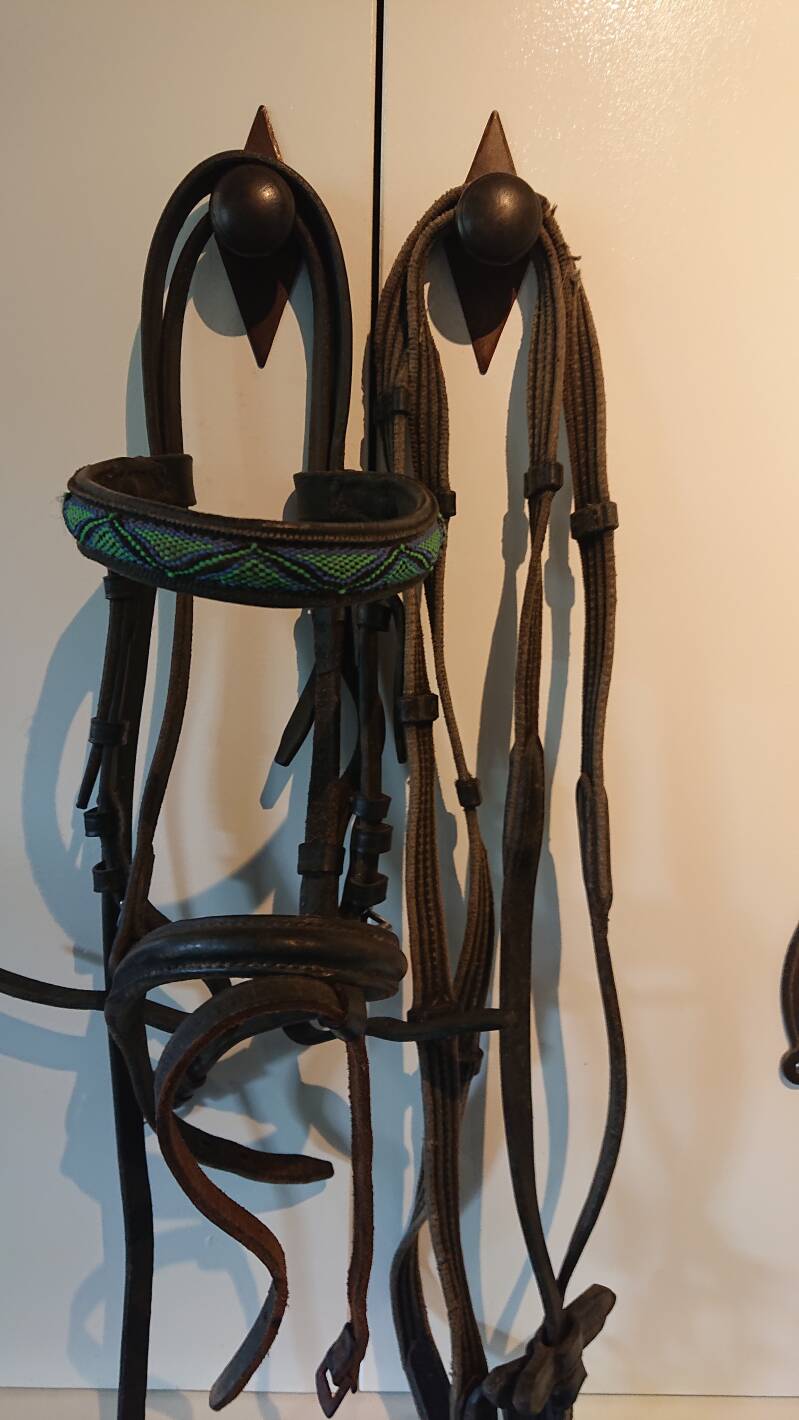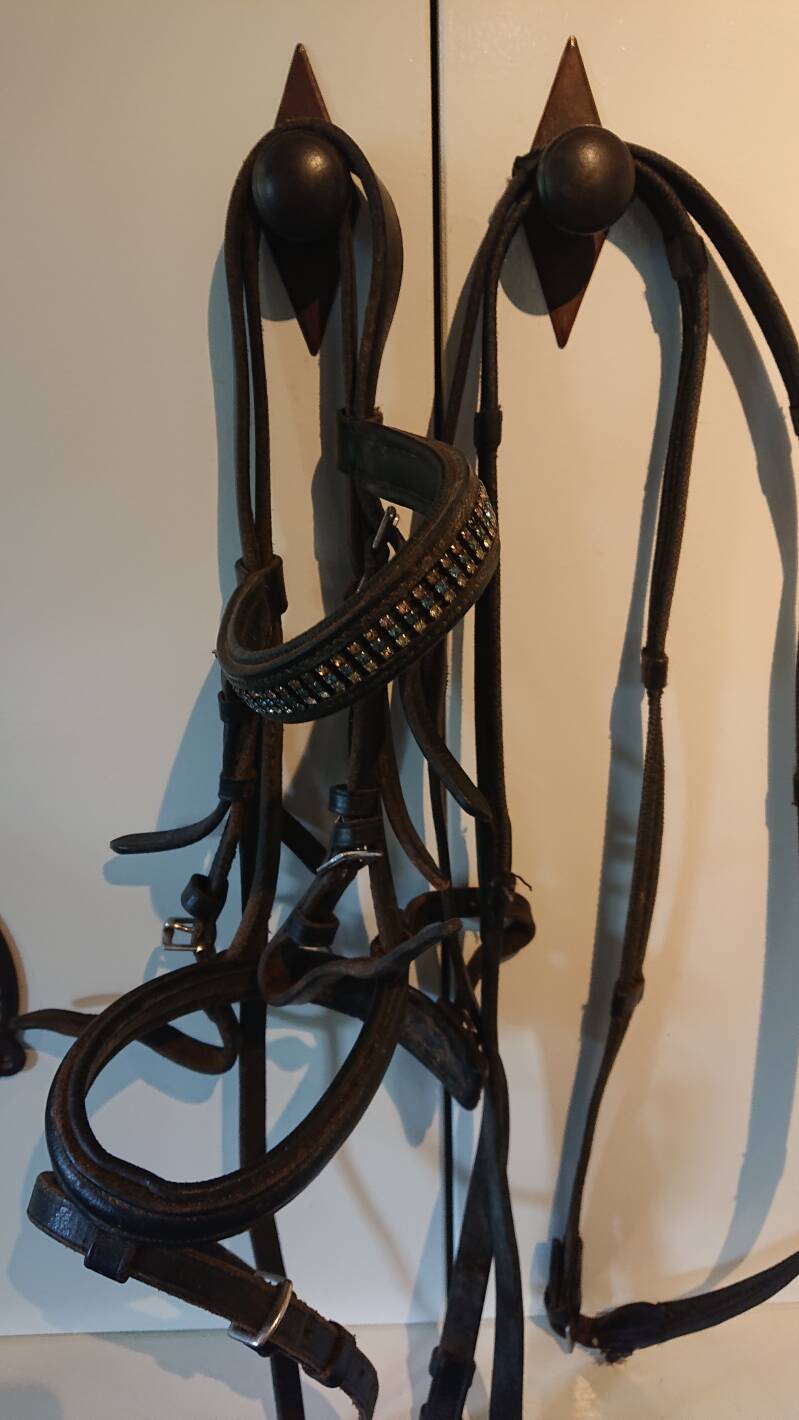 Shetties hoofdstel. Gespen zijn wat geroest, zie foto. Incl teugels. €2,-